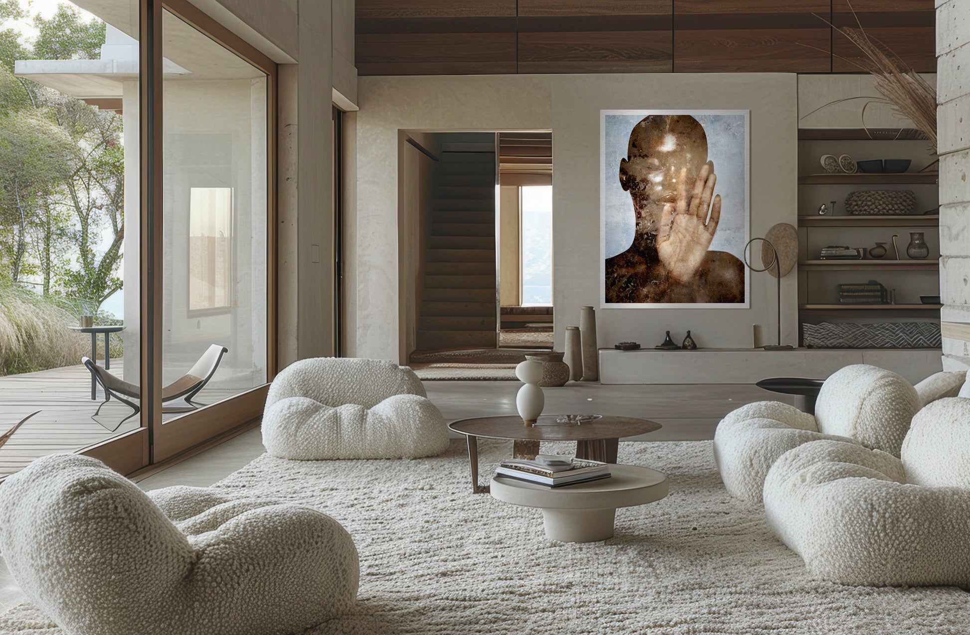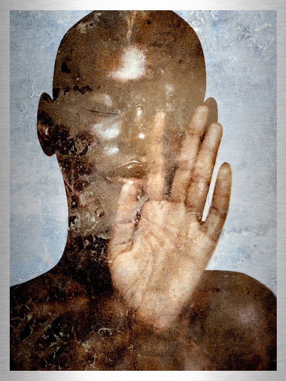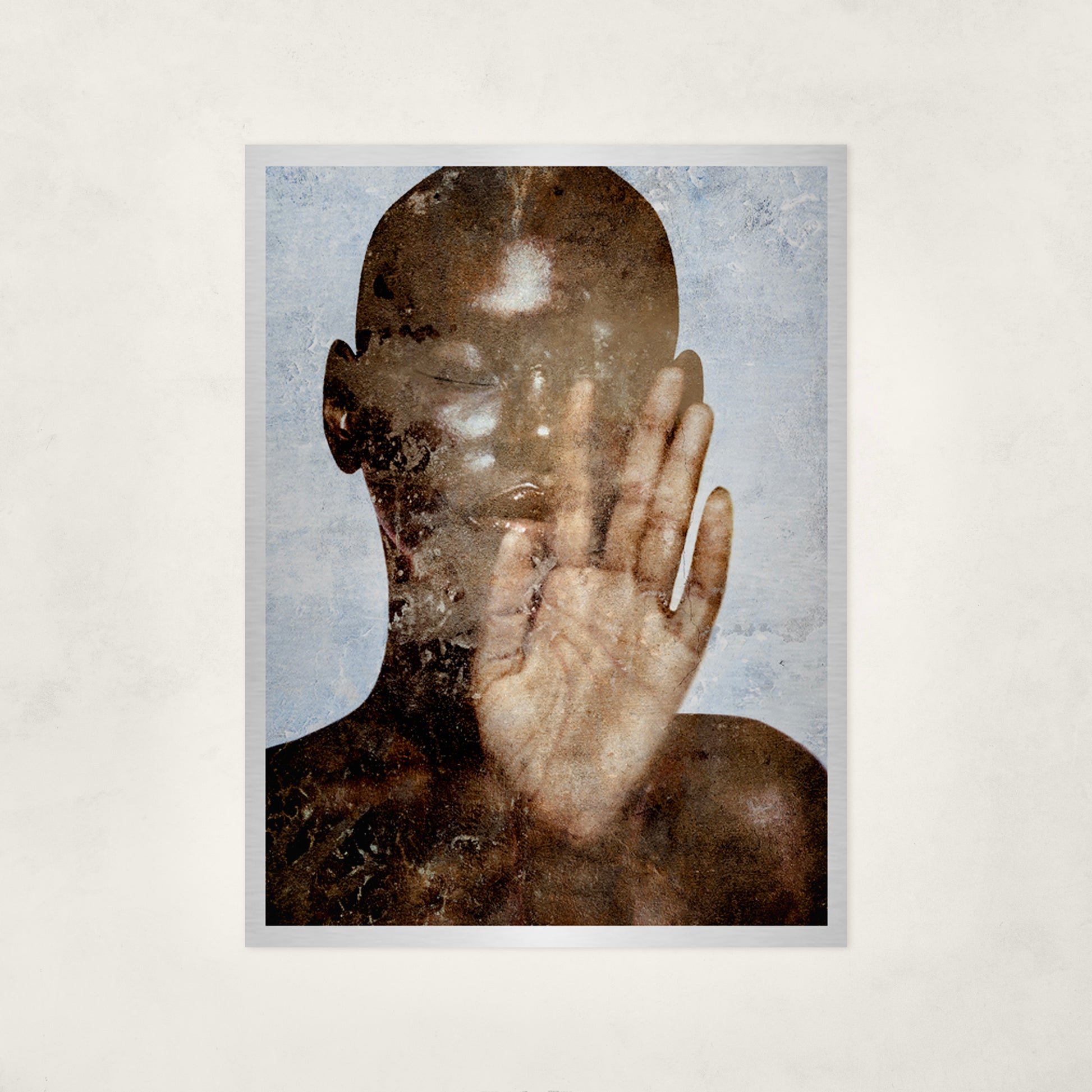 Printed on silver metal, the textures hold light and shadow, creating a sense of depth, touch, and aspiration.