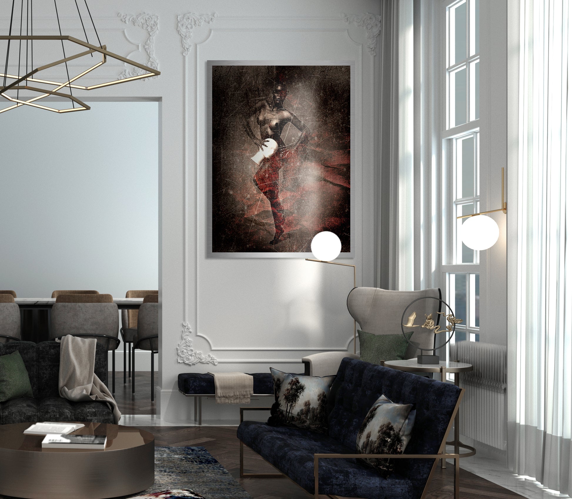 On the back of the art piece, we attach a sub-frame that makes it appear as if it’s floating 20 mm away from the wall.