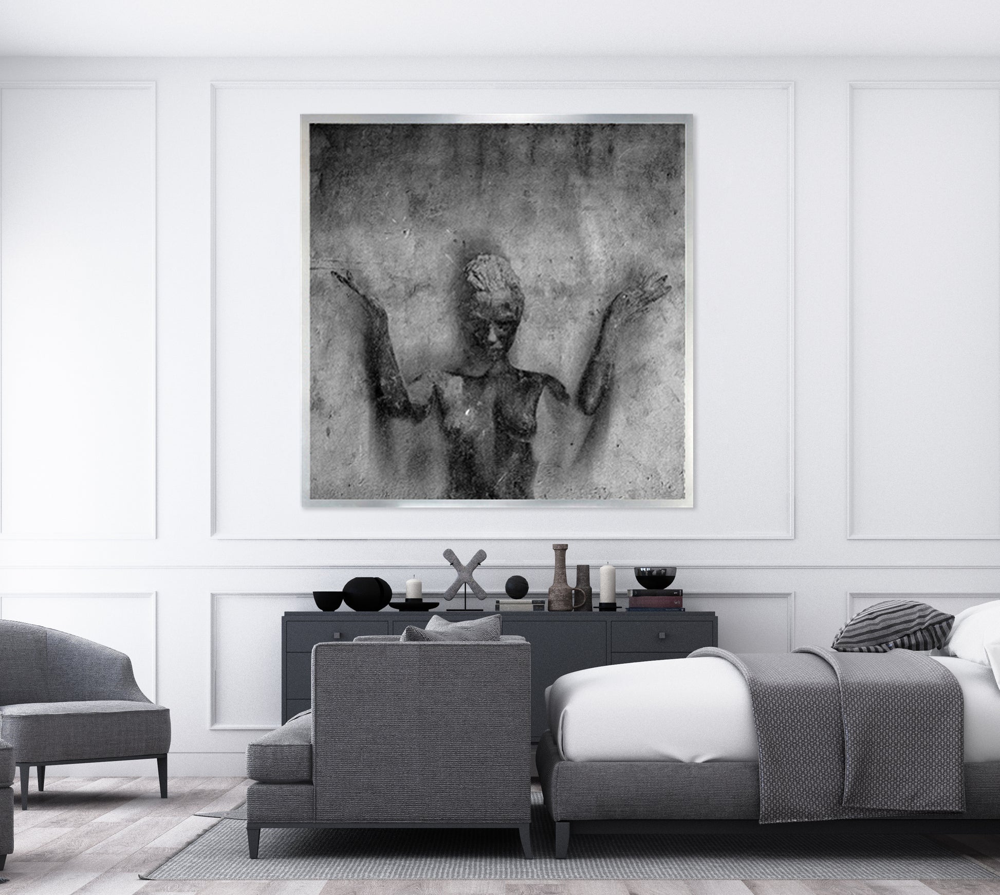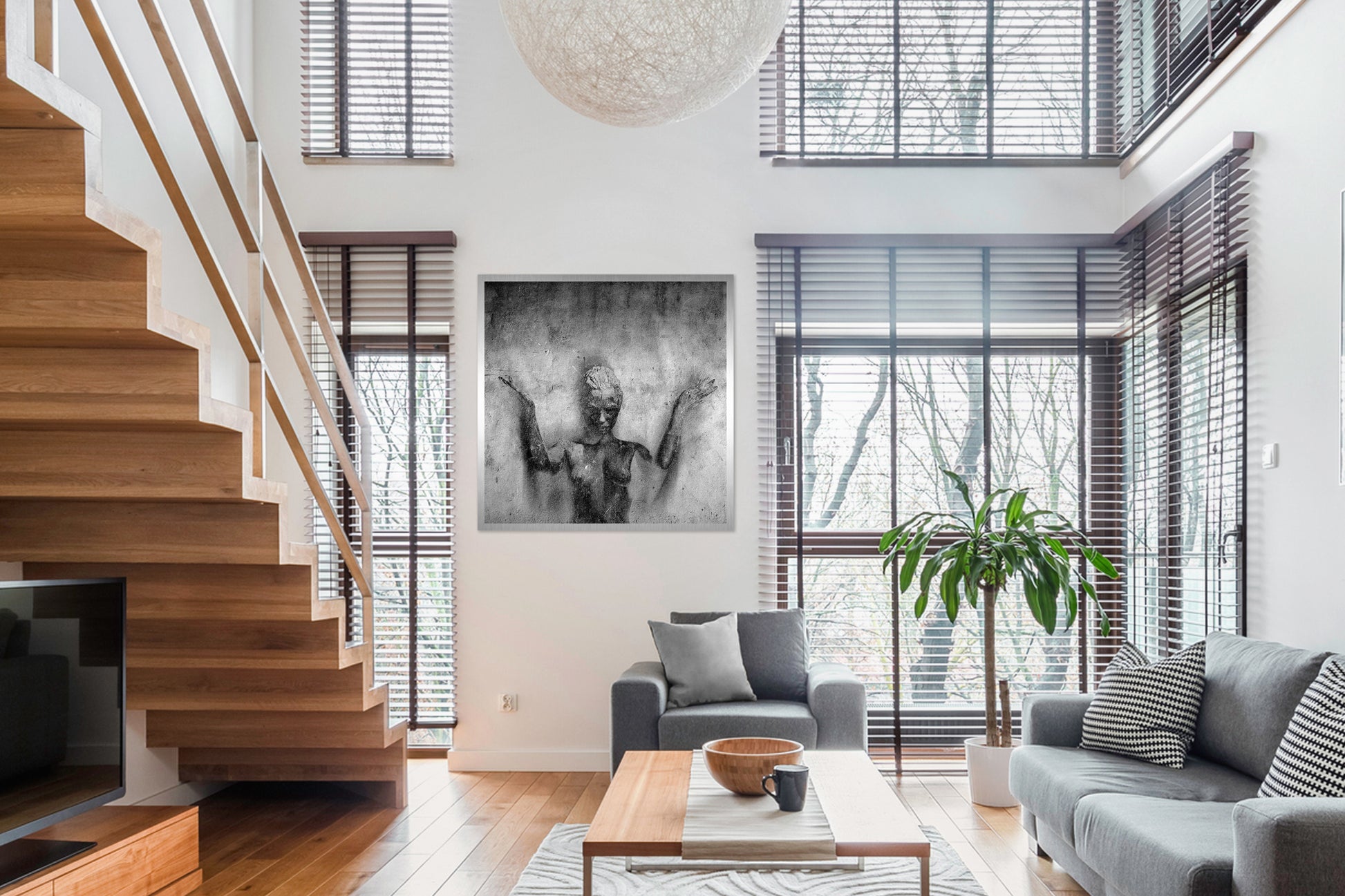 On the back of the art piece, we attach a sub-frame that makes it appear as if it’s floating 20 mm away from the wall.