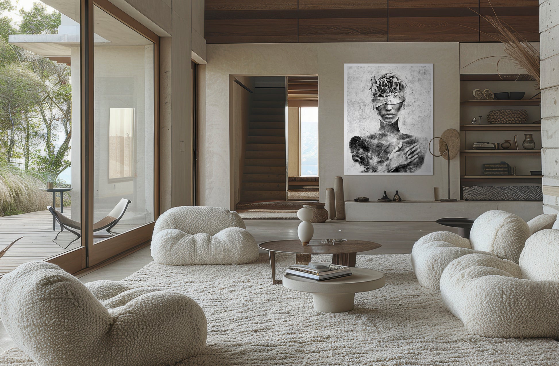 This artwork brings softness, quiet strength, and a reflective calm into a space.