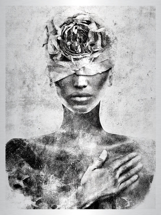 Within the silence of her portrait, 'Asha' whispers tales untold. Her hand cradles the melody of her heart, while the rose, a guardian of secrets, veils the windows to her soul, painting a narrative where emotions bloom, unseen yet deeply felt