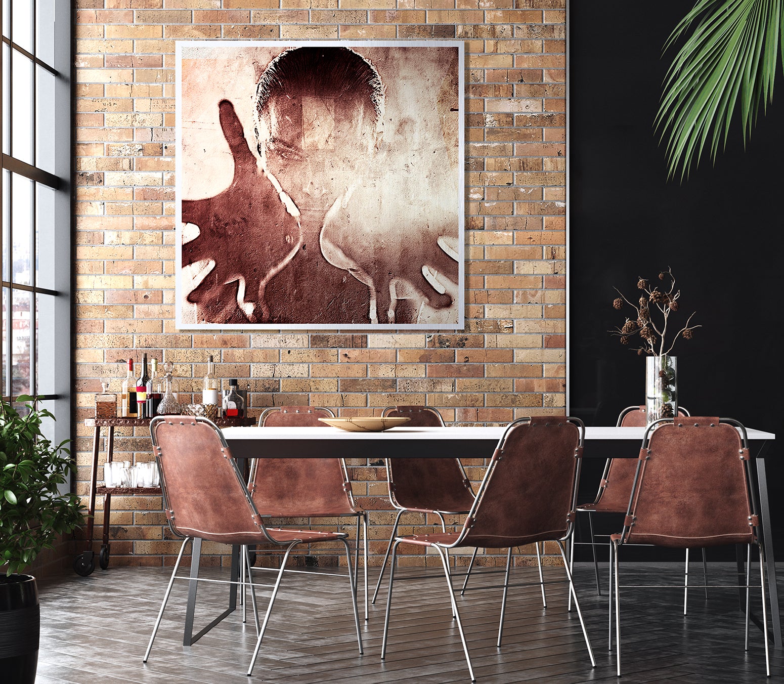 On the back of the art piece, we attach a sub-frame that makes it appear as if it’s floating 20 mm away from the wall.