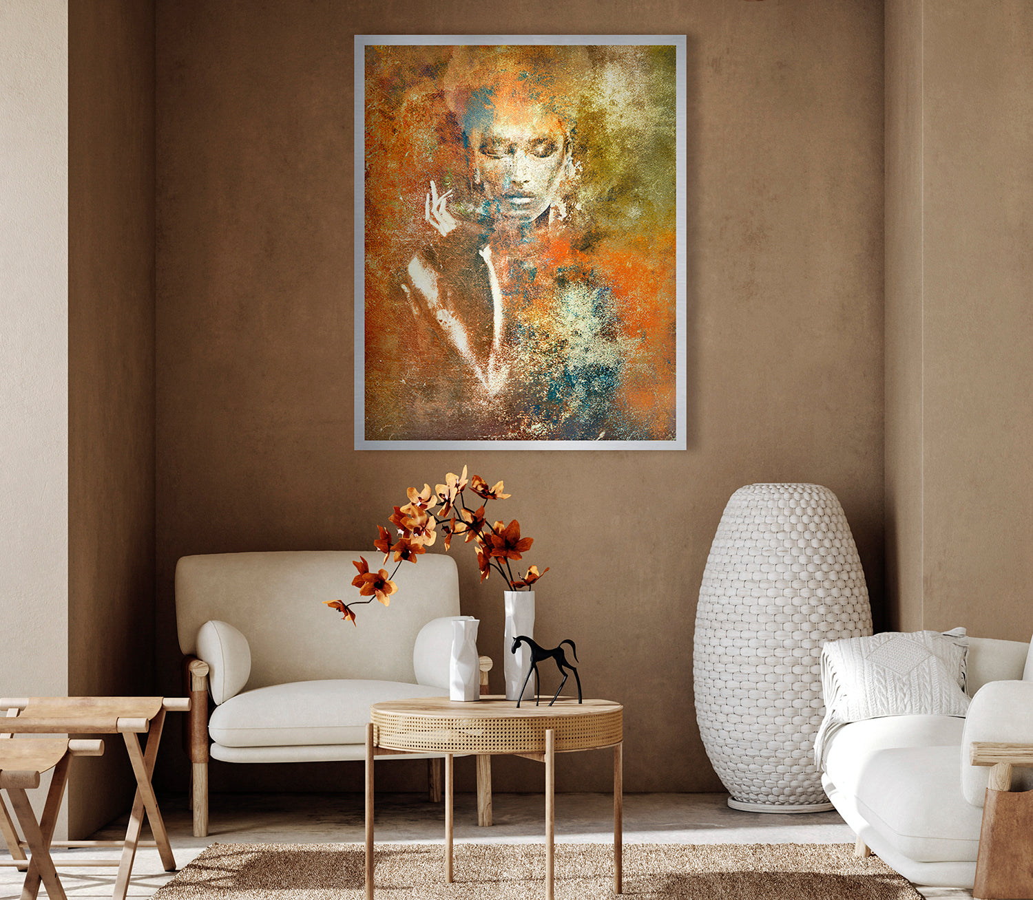 On the back of the art piece, we attach a sub-frame that makes it appear as if it’s floating 20 mm away from the wall.