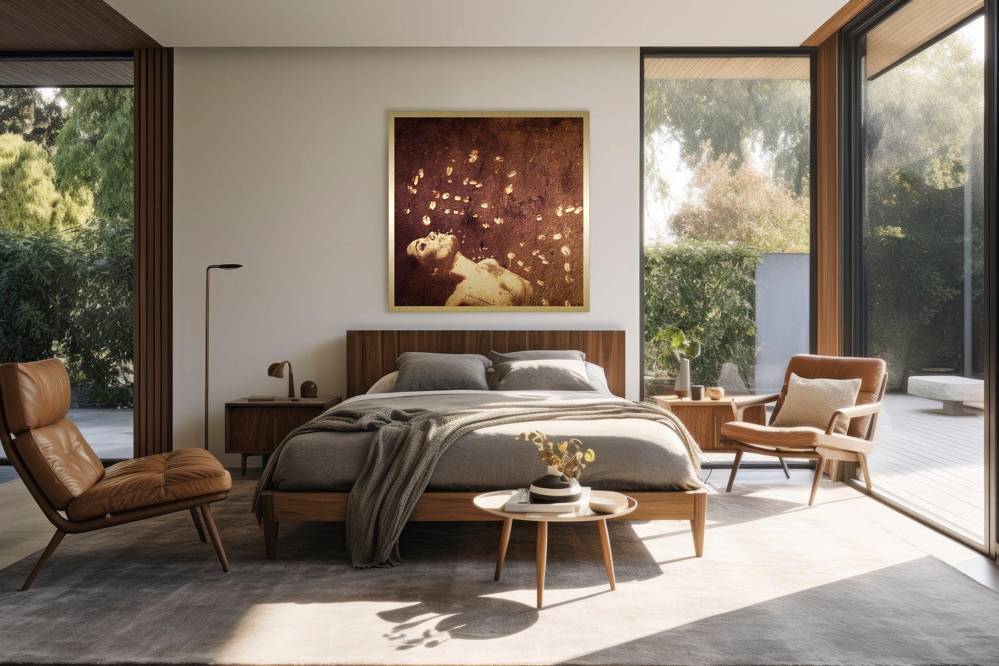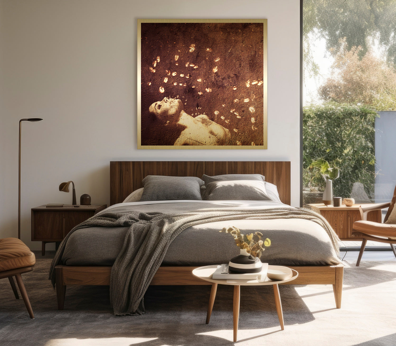 On the back of the art piece, we attach a sub-frame that makes it appear as if it’s floating 20 mm away from the wall.