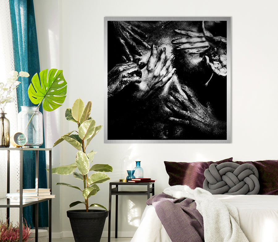 On the back of the art piece, we attach a sub-frame that makes it appear as if it’s floating 20 mm away from the wall.