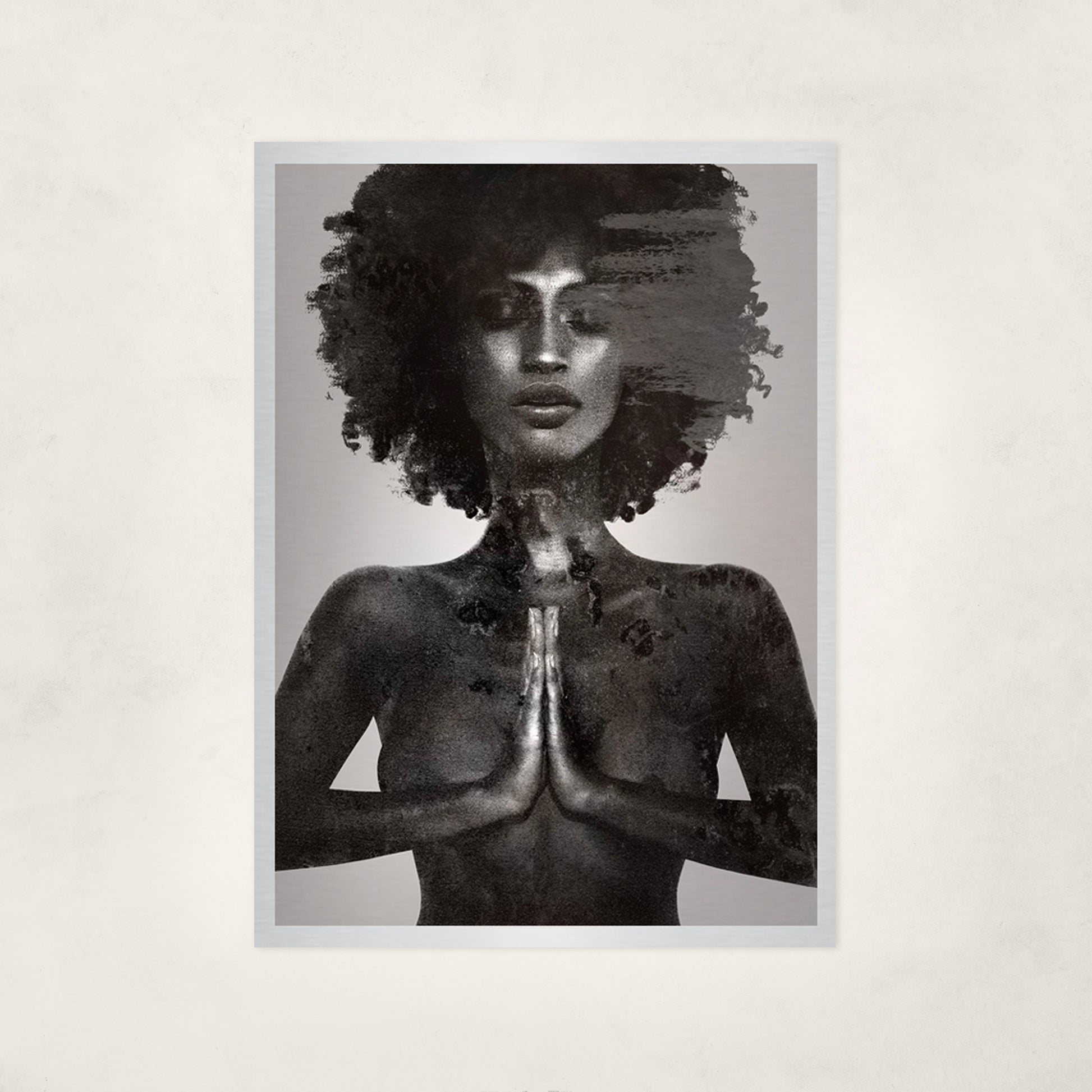 Printed on metal, the work gains strength through restraint: composed, deliberate, assured.
