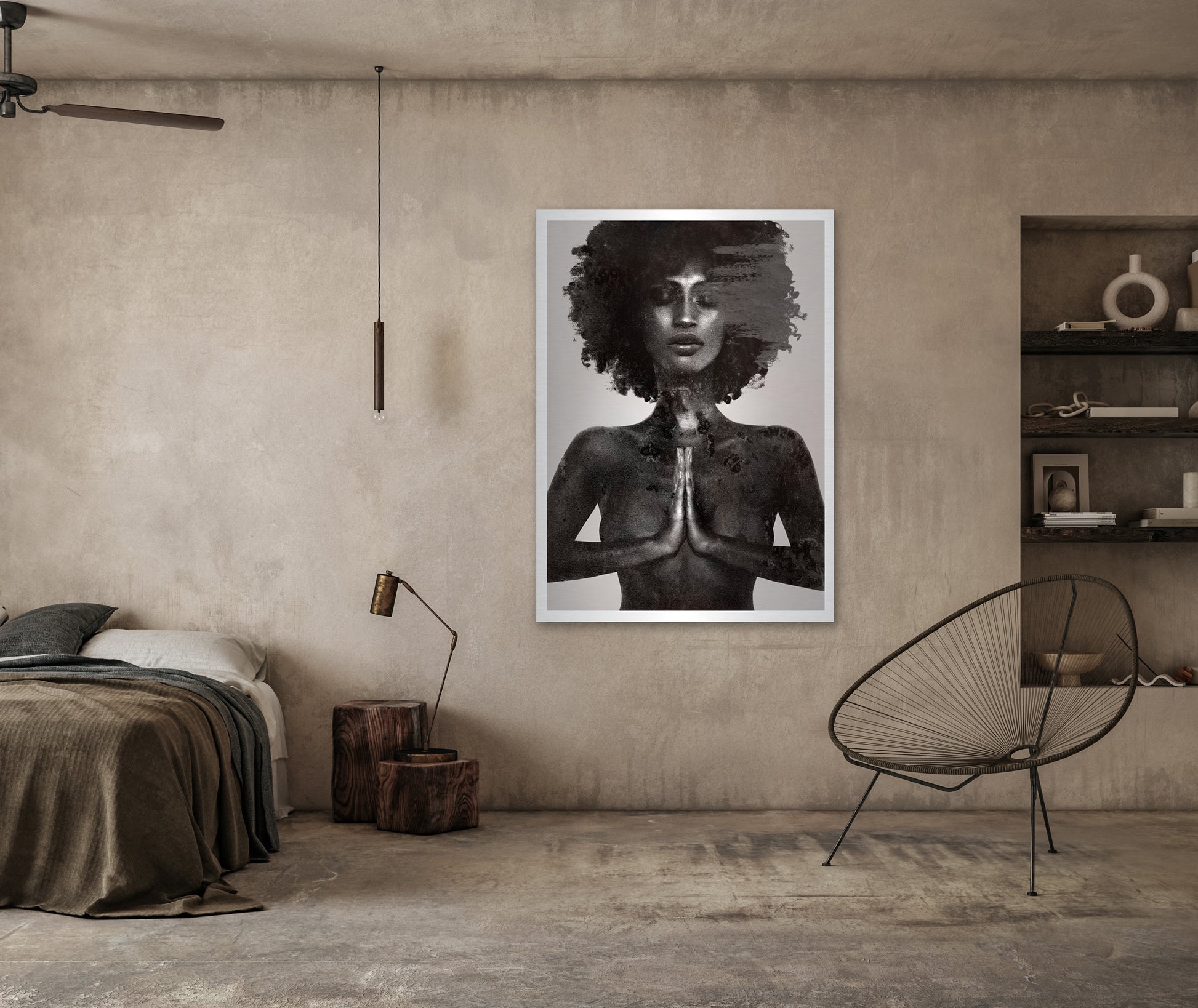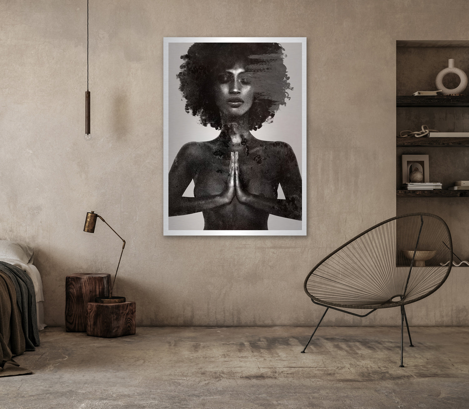 On the back of the art piece, we attach a sub-frame that makes it appear as if it’s floating 20 mm away from the wall.