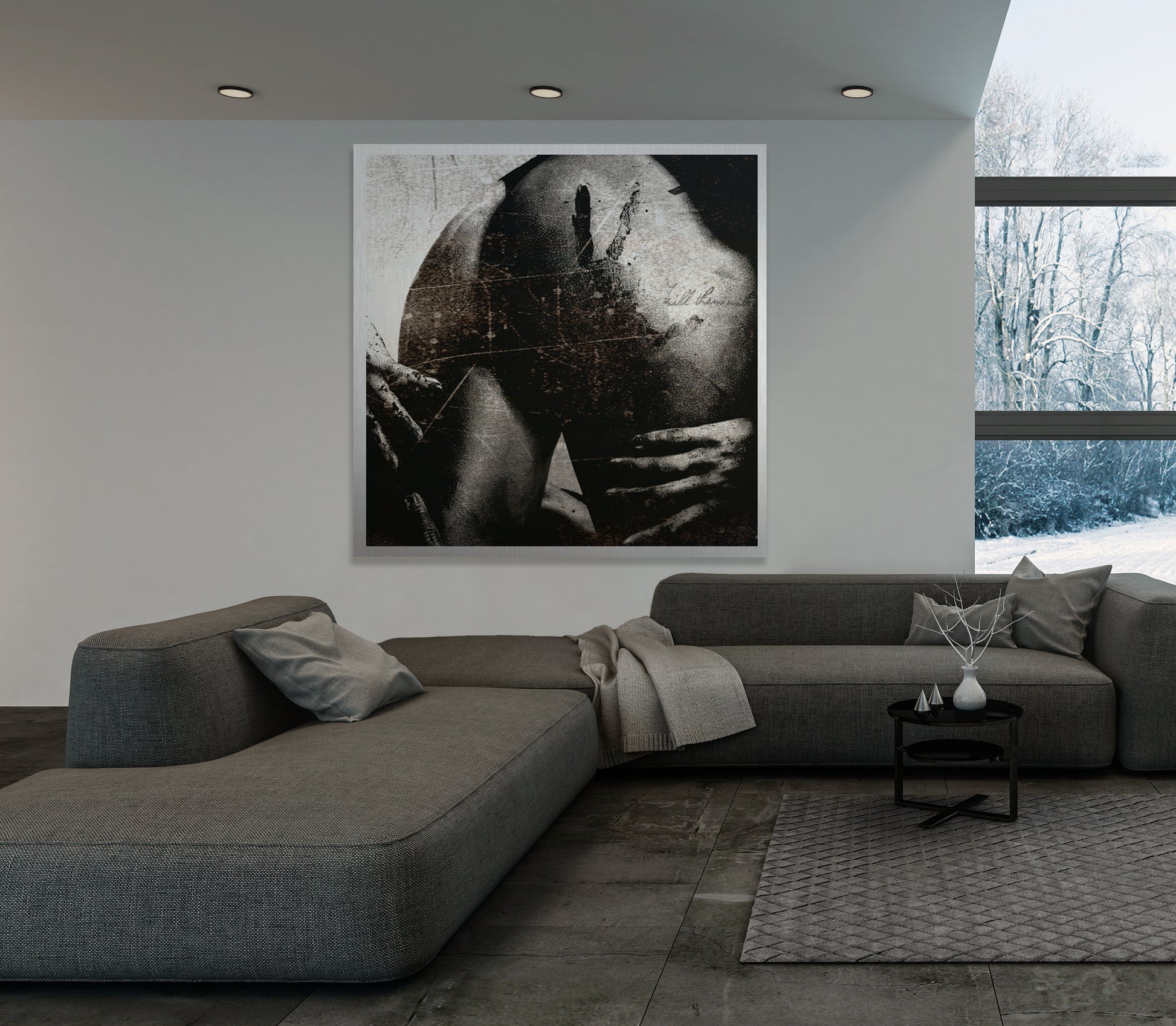 On the back of the art piece, we attach a sub-frame that makes it appear as if it’s floating 20 mm away from the wall.