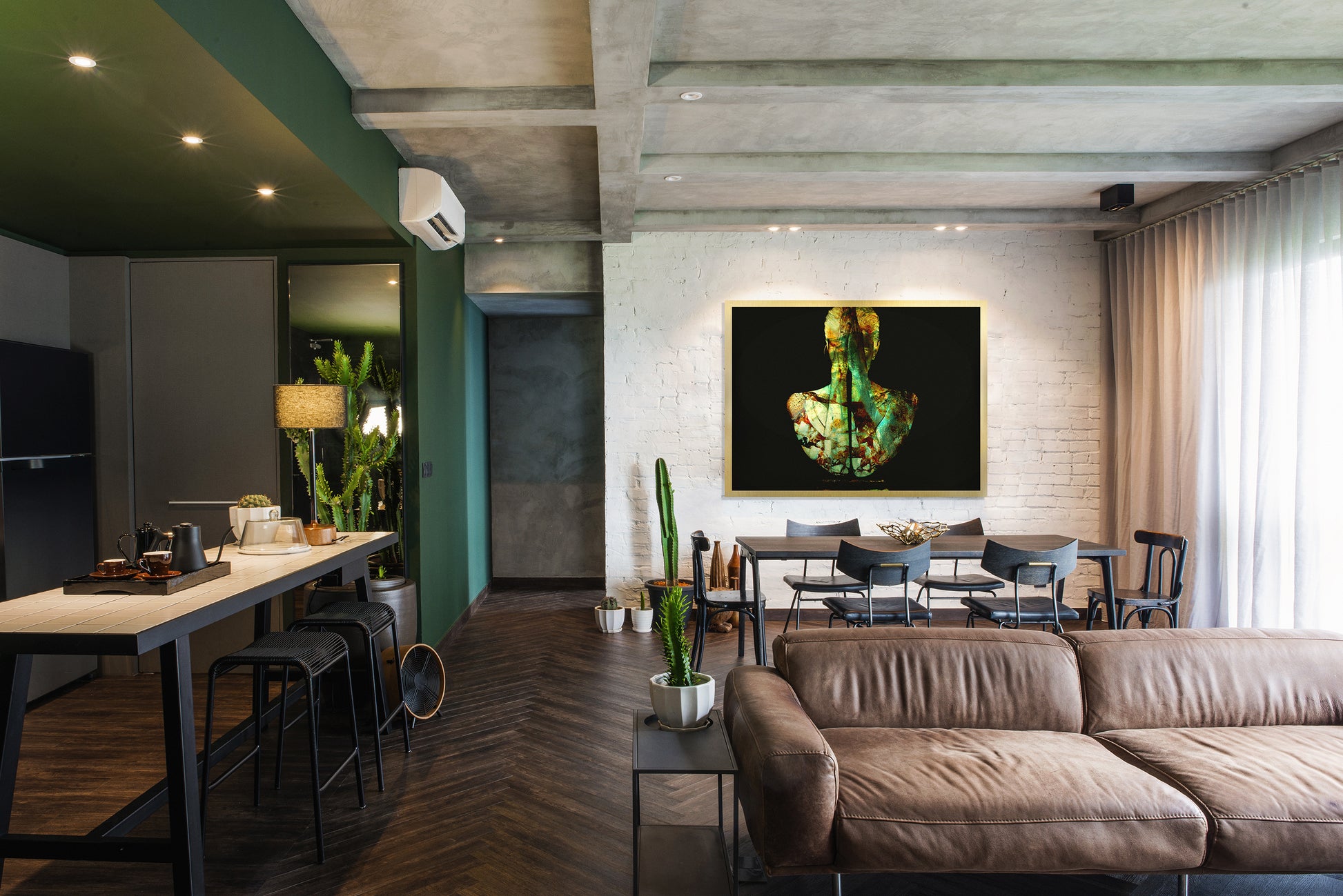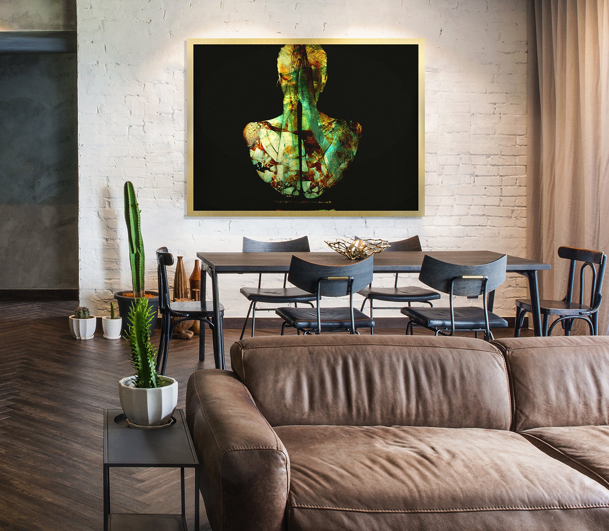 On the back of the art piece, we attach a sub-frame that makes it appear as if it’s floating 20 mm away from the wall.