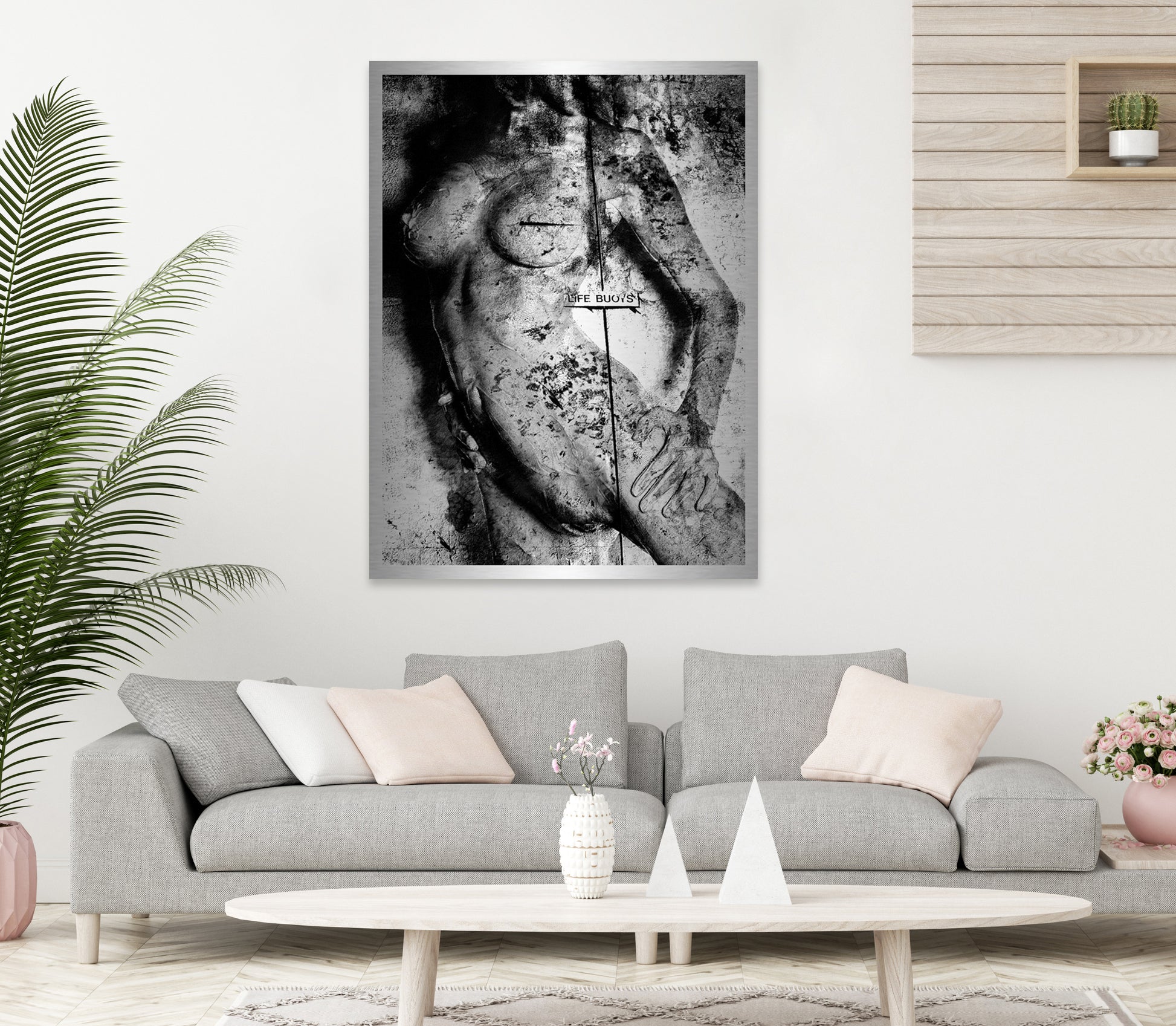 On the back of the art piece, we attach a sub-frame that makes it appear as if it’s floating 20 mm away from the wall.