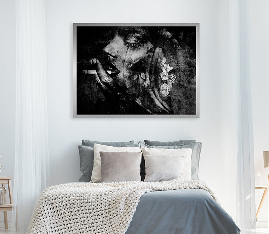 On the back of the art piece, we attach a sub-frame that makes it appear as if it’s floating 20 mm away from the wall.