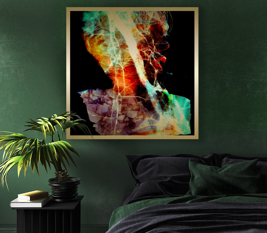 On the back of the art piece, we attach a sub-frame that makes it appear as if it’s floating 20 mm away from the wall.