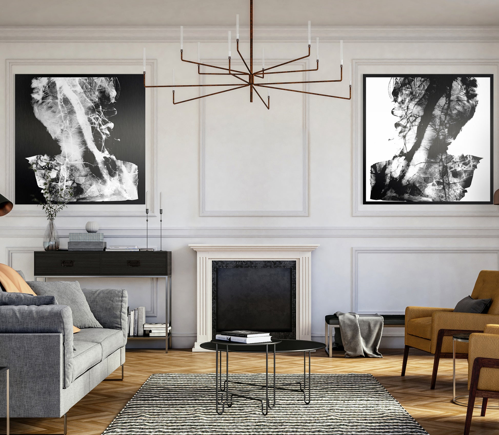 On the back of the art piece, we attach a sub-frame that makes it appear as if it’s floating 20 mm away from the wall.