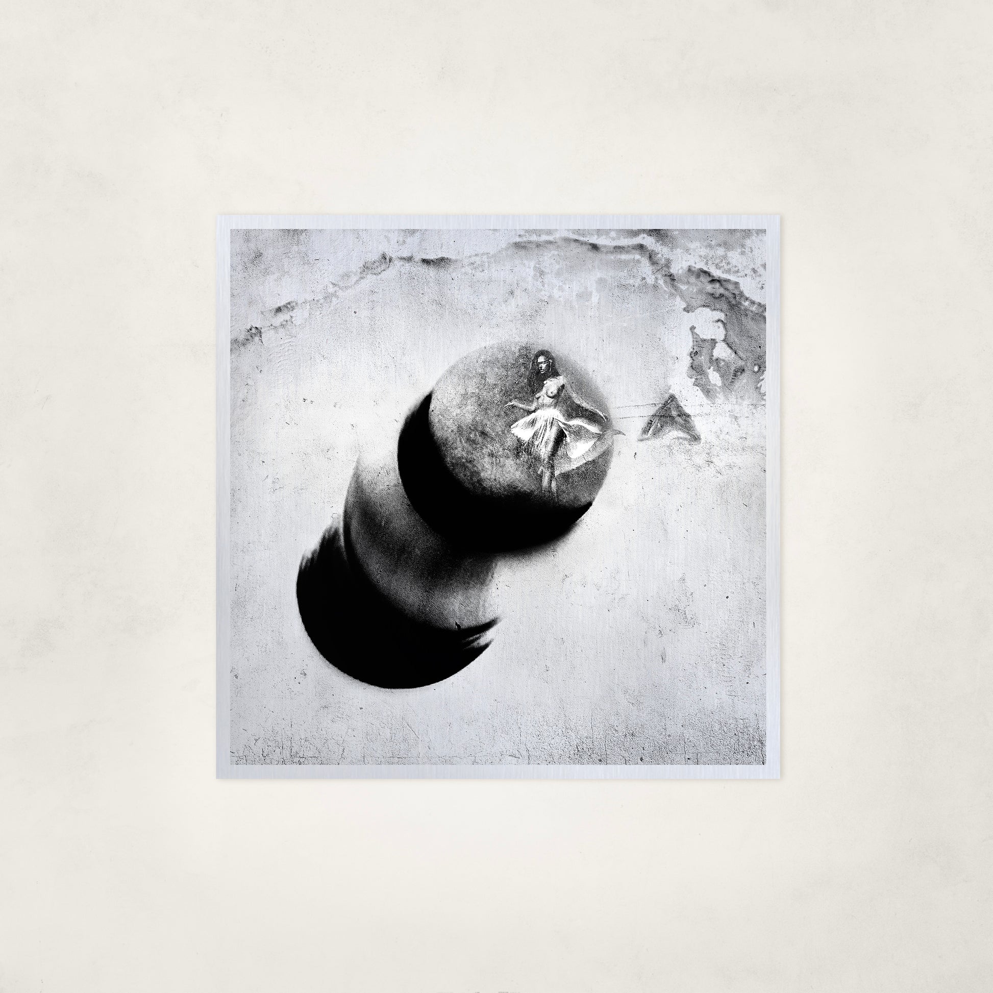 Printed on metal, the image feels anchored and inevitable.