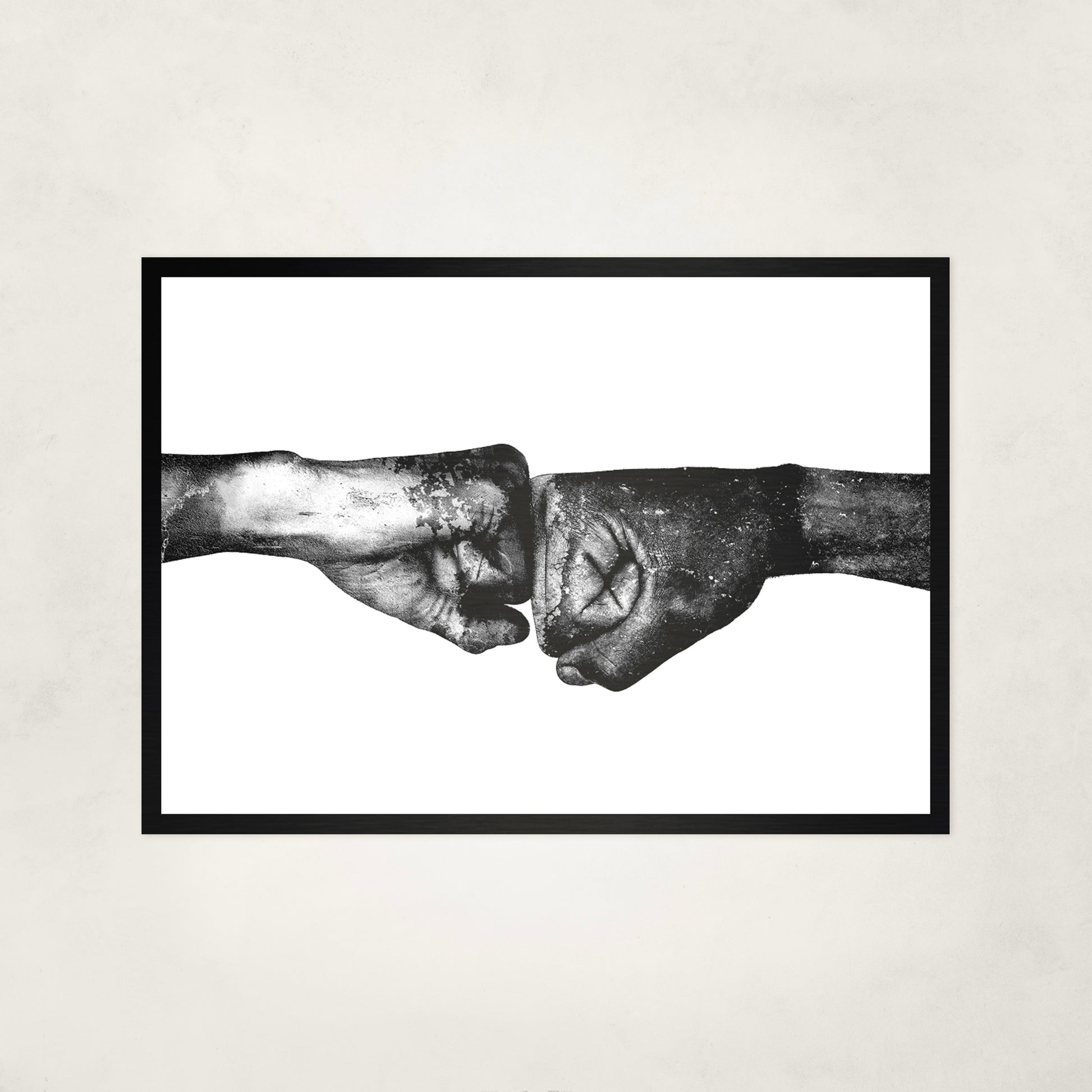 Printed on black metal, the contrast is uncompromising. The image gains weight and clarity, holding the moment in suspension — firm, deliberate, and resolved.