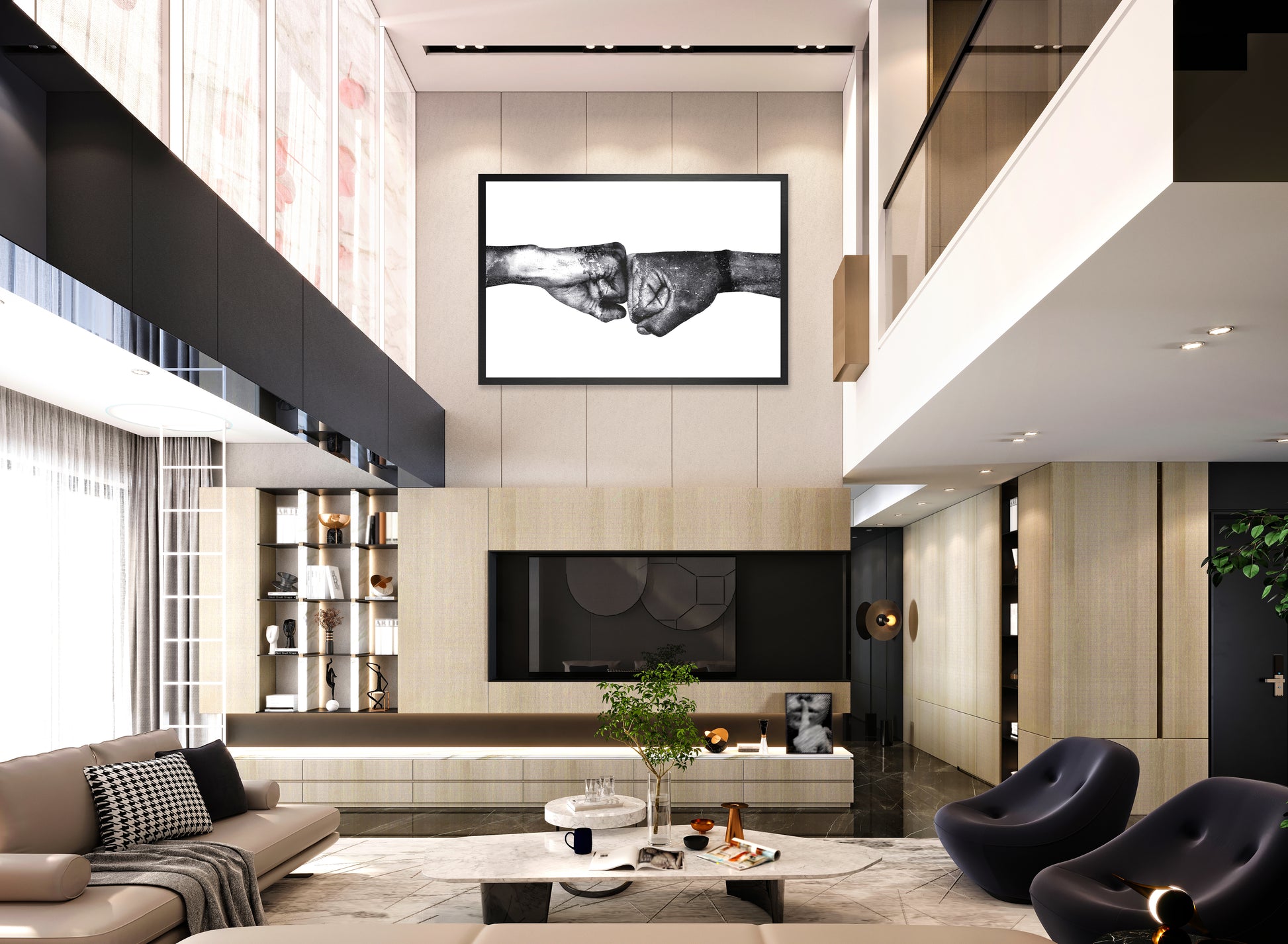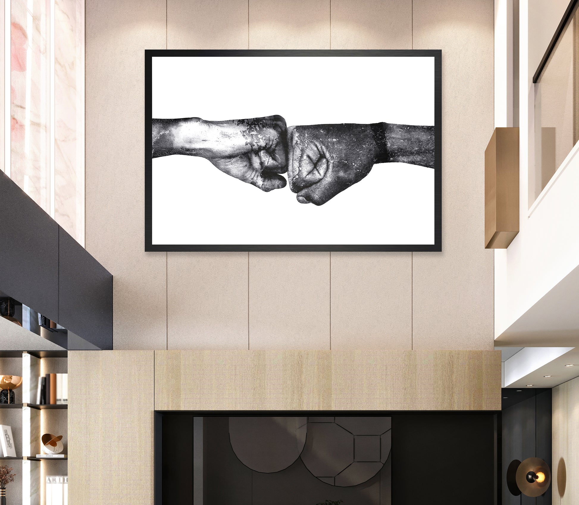On the back of the art piece, we attach a sub-frame that makes it appear as if it’s floating 20 mm away from the wall.