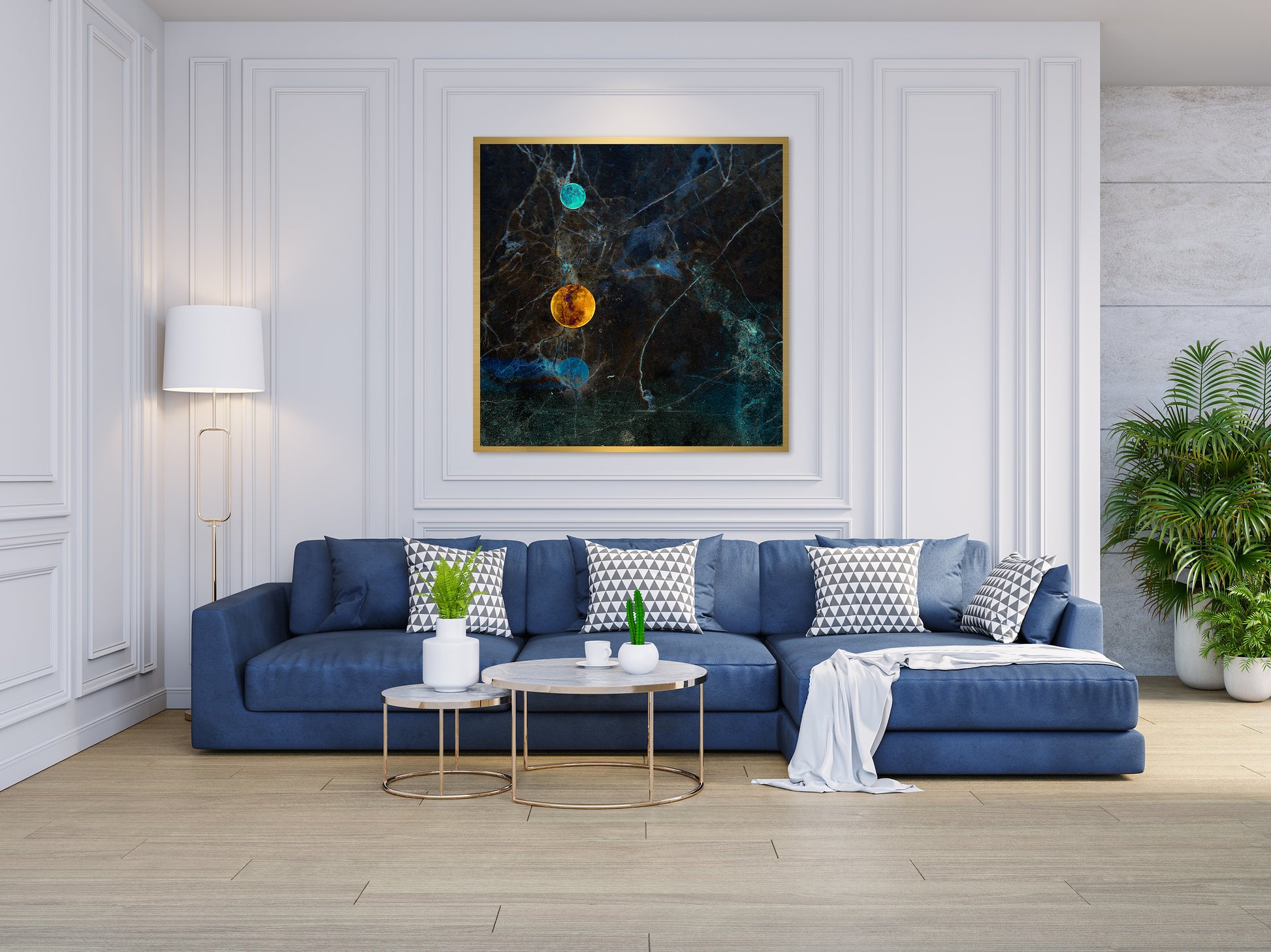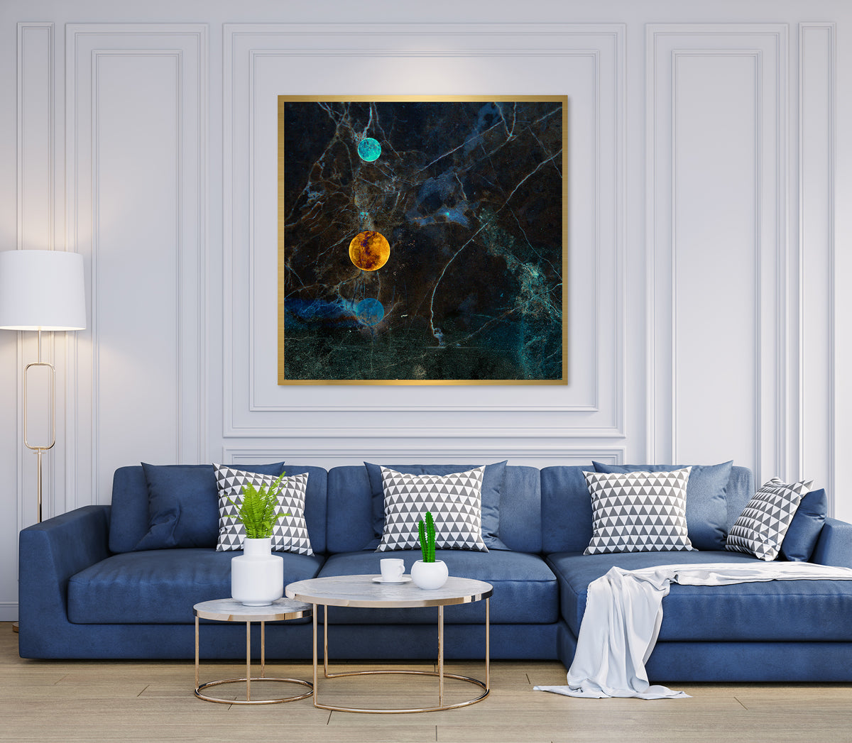 On the back of the art piece, we attach a sub-frame that makes it appear as if it’s floating 20 mm away from the wall.
