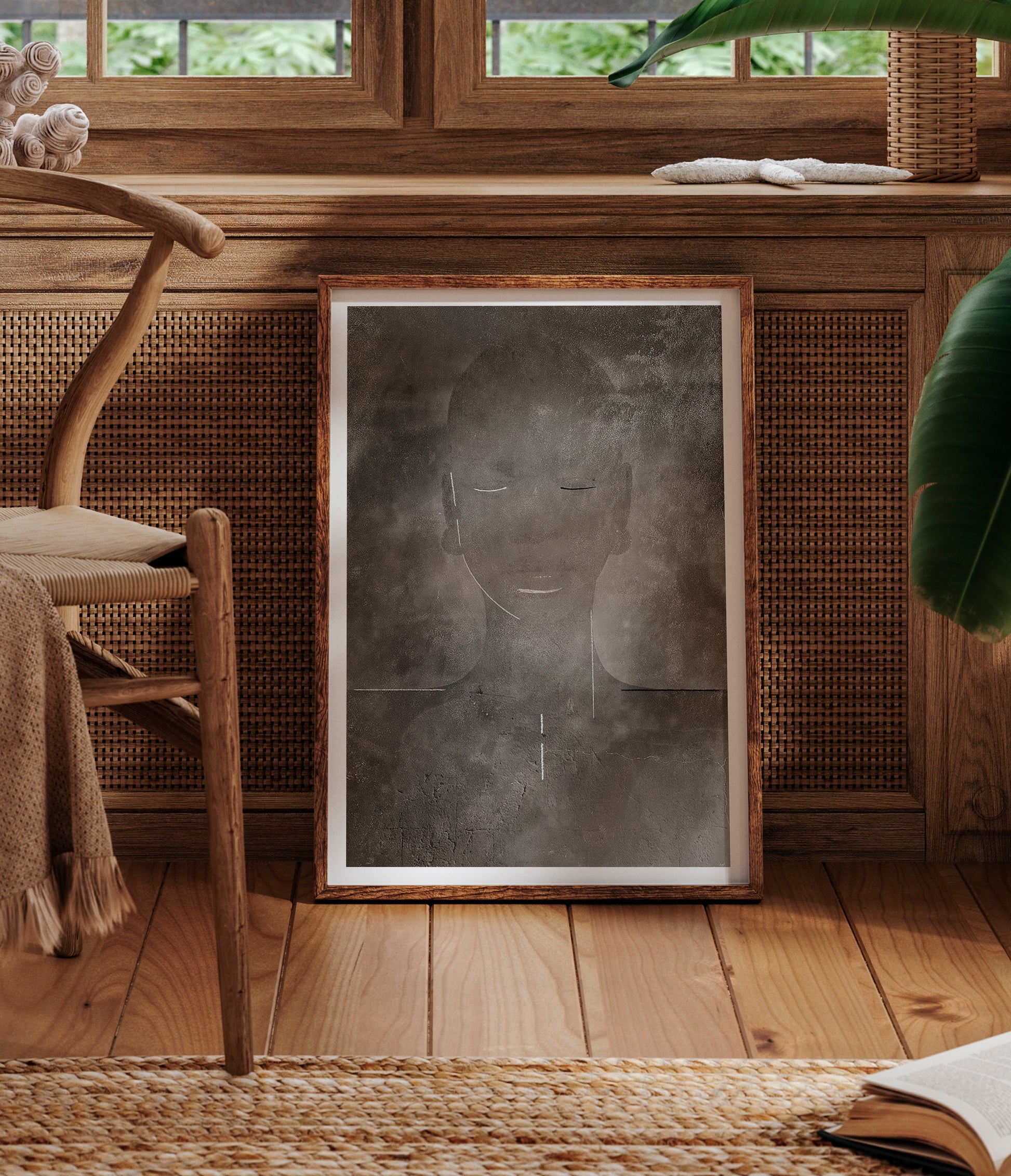 This artwork brings calm focus, depth, and contemplative balance into a space.
