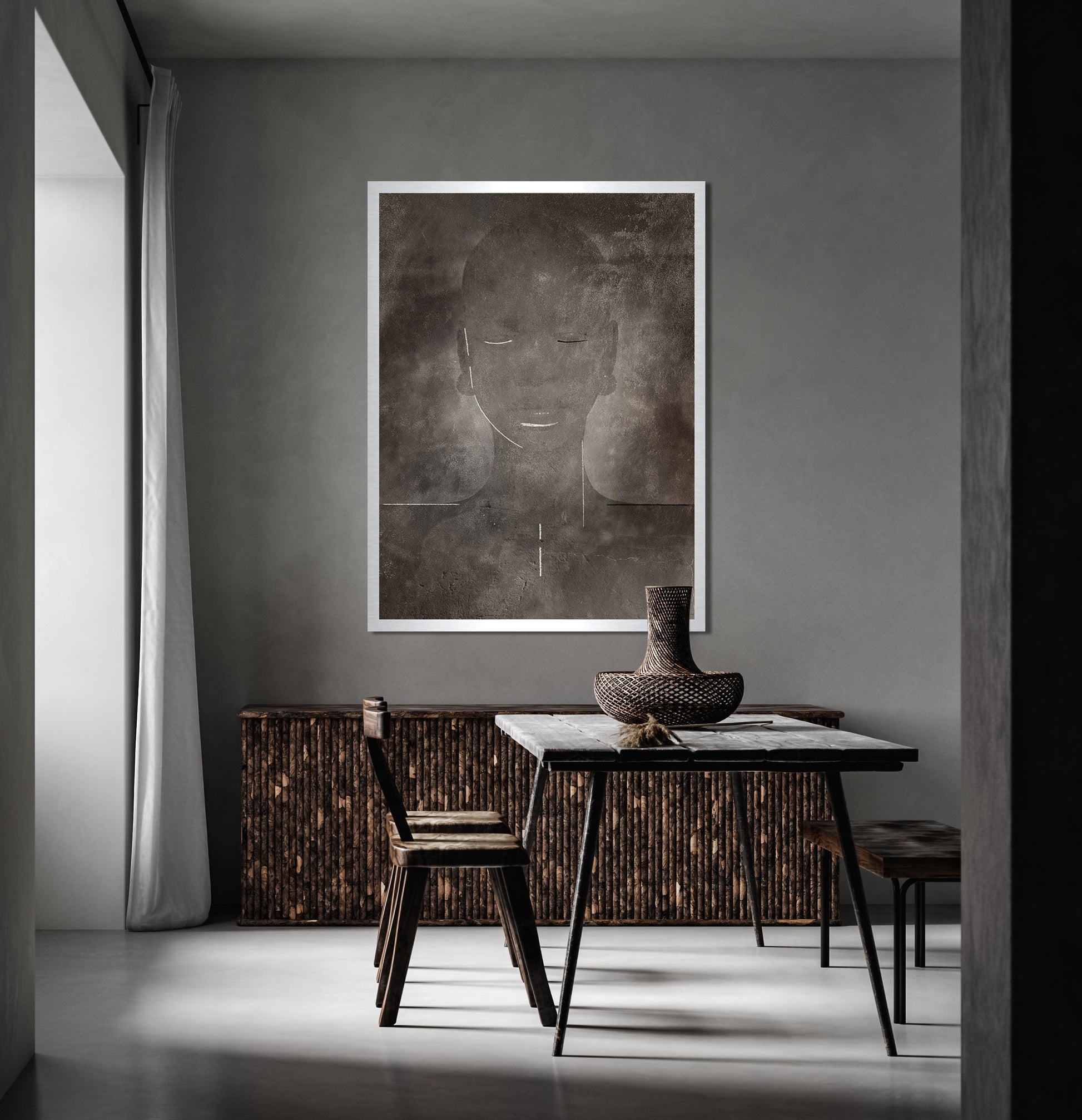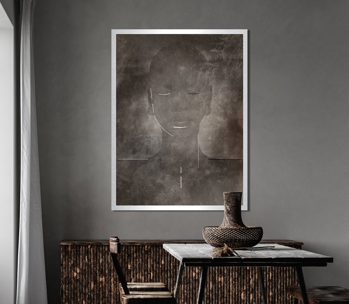 On the back of the art piece, we attach a sub-frame that makes it appear as if it’s floating 20 mm away from the wall.
