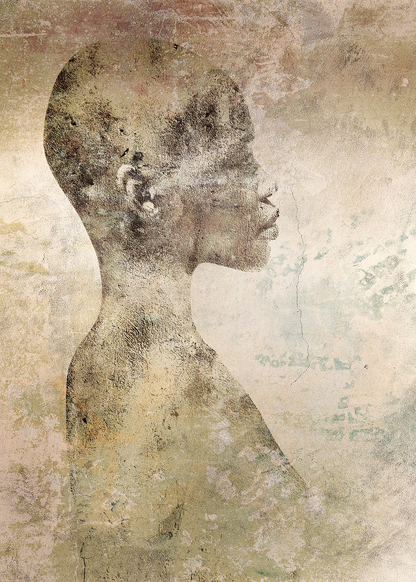 The photographic layers and textures employed in Sentinel create a rich tapestry of visual elements. Earthy and green tones dominate the composition, infusing it with a sense of organic harmony.