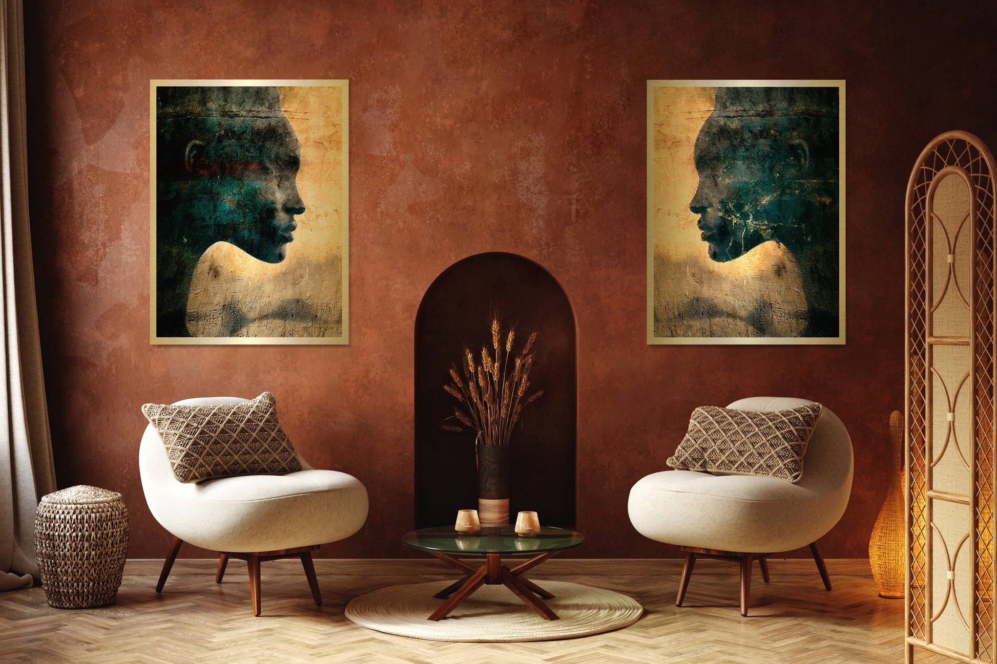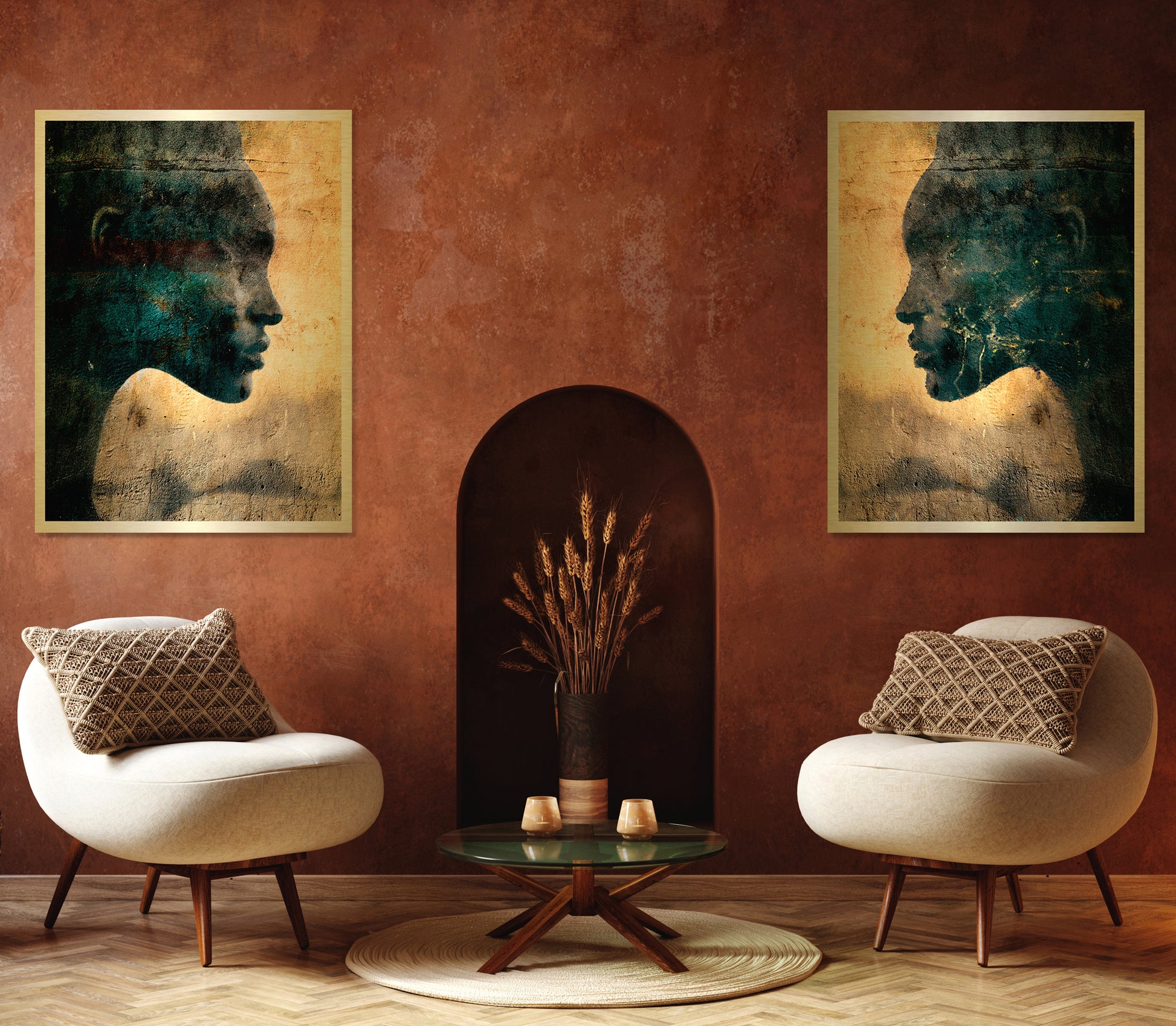 On the back of the art piece, we attach a sub-frame that makes it appear as if it’s floating 20 mm away from the wall.